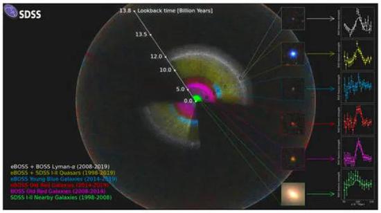 暗能量是目前宇宙的主体成分,揭示其本质具有重大科学意义。eBOSS国际合作组由包括国家天文台在内的30余所国际一流天文研究单位组成。自2014年运行以来,eBOSS项目历时6年,在红移0.6到2.2之间获取了近100万条星系光谱,取得了一系列重要的科学结果,圆满完成科学任务。