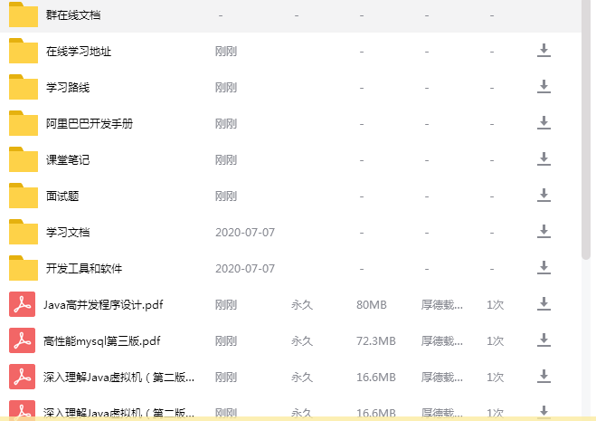 PS:由于网盘下载次数过多,可能会导致失效,全文学习资料已经全部上传至我的公告地址,需要的话可查看,还有我这段时间整理的一些Java学习手册,面试题,开发工具,PDF文档书籍教程,需要的话都可以进来自行下载。