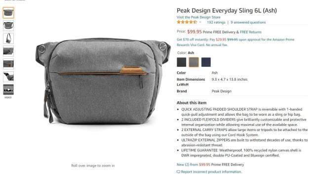 Peak Design自2017年开始在其网站上销售一款名为"Everyday Sling"的相机包。去年10月,亚马逊上出现了一款设计极其相似、但价格只有它三分之一的商品。总部位于旧金山的Peak Design公司的首席执行官彼得·德罗(Peter Dering)表示,他的公司推出的这款"Everyday Sling"是亚马逊网站上最畅销的高档相机包。也正因如此,它成为了被抄袭的对象。