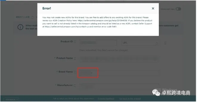 如果没有注册品牌也遇到了5461报错,应该是用了已注册品牌备案的品牌名了。