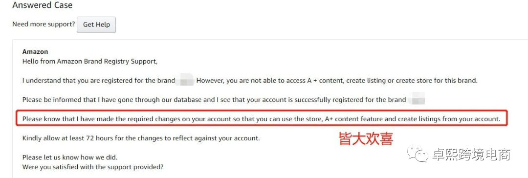 6. 邮件发送之后,会收到亚马逊品牌团队的回复邮件,问题到这基本解决了。