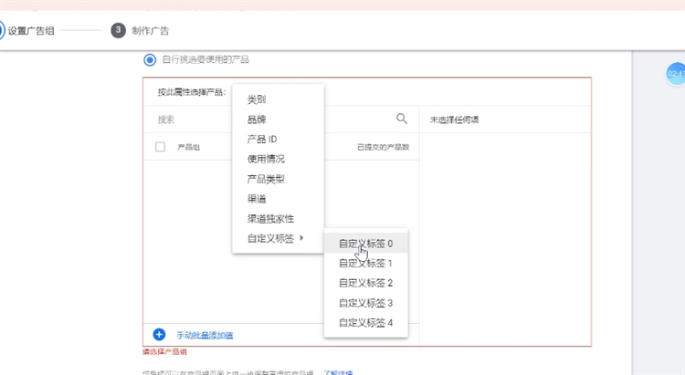 3.自行选择产品可以选择在feeds时填写的自定义标签 custom label