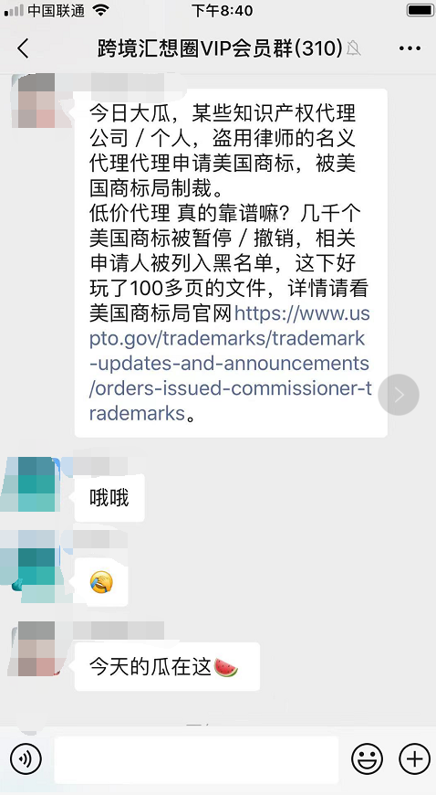 1,商标申请还是要找靠谱的机构今天会员群,爆料了一个很大的事情,就是某家知识产权公司盗用了美国律师事务所的名义申请美国商标,去年年底大家美国商标为了抢客户,2000-3000的价格一大把在做,大家回去看看自己家的申请的商标,会不会也有这个问题我有个做知识产权的朋友说,目前有上万件挂了,大概就有3000多万的资金,这可不是一个小数目。2,华南城某大麦子公司的品牌也被下架了。网上不知道谁P的这张假图,