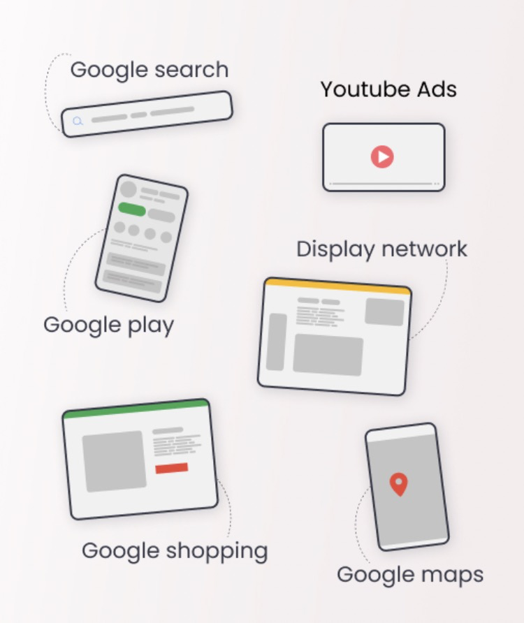 什么是 Google Ads ?Google 是世界上最大的搜索引擎,占据超过75%的搜索引擎市场份额。根据 Live Stats 的实时数据,Google 每天有接近50亿的搜索量。在如此巨大流量下,利用 Google Ads 推广你的商品和服务是明智之举。Google Ads 有多种广告形式,包括:搜索广告:搜索广告会针对基于像"维修管道服务"等关键字的搜索结果来展示广告。搜索广告显示在 Google 搜索结果页面的顶部和底部抑或是右边空白处。展示广告:当关键字和图片与独立站内容相关时,展示广告会在网页和应用上展示您的广告。这些广告可以以视频、图片等形式出现。购物广告:让你的品牌在直接搜索的情况下,在Google购物等页面通过图文并茂的形式进行展示。视频广告:基于视频的广告可让您在 YouTube 等流媒体和整个 Google 展示广告网络上展示广告。Google Ads 再营销广告:Google 会给予商家一种追踪手段对消费者进行重新定位,因此可以对未消费的人群进行再营销并赢得销售转化。广告投放位置包括:Google 搜索,Google Play 应用商城,Google 展示广告网络,Google Shopping,Google 地图等。