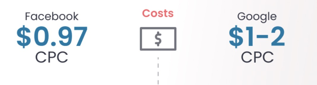 Google vs Facebook 广告费用对比截至 2021 年 4 月,Facebook 广告中的 CPC(每次点击费用)的一般为 0.97 美元。
