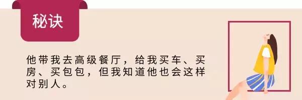我知道很多姑娘都羡慕这样的生活,但我还是要说一句欠揍的话,这样真的不快乐。他带我去高级餐厅,给我买车、买房、买包包,但我知道他也会这样对别人。