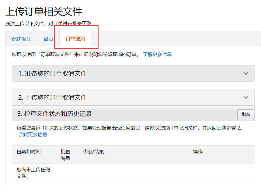 在这里,你就可以通过上传模板文件,来取消订单了。
