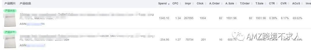 上图:产品一花钱多,ACoS 高,产品二花钱少,ACoS 低;