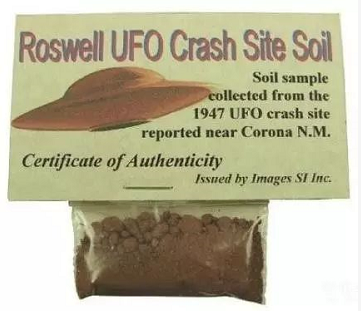 据说是在50多年前,有一个UFO在美国的罗兹威尔坠毁。这包泥土就是从发现UFO的地方收集回来的。这一小包泥售价15.72美元。