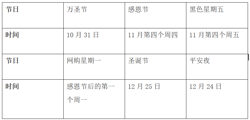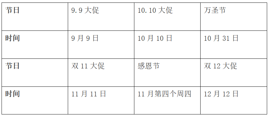 随着跨境旺季的到来,跨境卖家应该在大促的前一个月开始清点库存,做好备货准备,并根据不同的节日特点进行备货。以欧美站的下一个节日万圣节为例,卖家在备货期间应该重点关注Cosplay服装、LED灯饰、鬼怪家装、鬼怪玩具、带万圣节风格等相关产品,而在感恩节期间,卖家则应该主要准备厨房用品、服装、鞋帽、珠宝、家装(特别是灯)、婴幼儿用品、消费类电子产品等产品。黑五作为欧美大促的重要节日,其声势浩大仿若国内双十一,许多买家往往会趁此机会进行大肆囤货,因此厨房用品、服饰鞋帽、日用家居等产品在这个阶段的需求量很高,卖家需要进行充足备货。