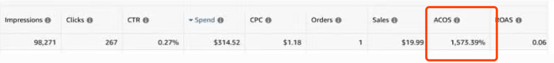 运营D转发了一个广告数据,ACOS已经高达1573%了!