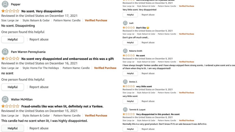 据外媒报道,在亚马逊上,YankeeCandle品牌香薰蜡烛最近几周收到了许多差评,大量买家抱怨蜡烛缺乏香味。媒体评论称,这可能与感染新冠病毒以及冬天感冒多发有关,这些情况会降低嗅觉灵敏度。美国东北大学政治学助理教授尼克·博尚(NickBeauchamp)记录了亚马逊上对YankeeCandle的差评情况。分析指出,随着Omicron变种开始在全国范围内传播,该产品差评在最近几周出现了显