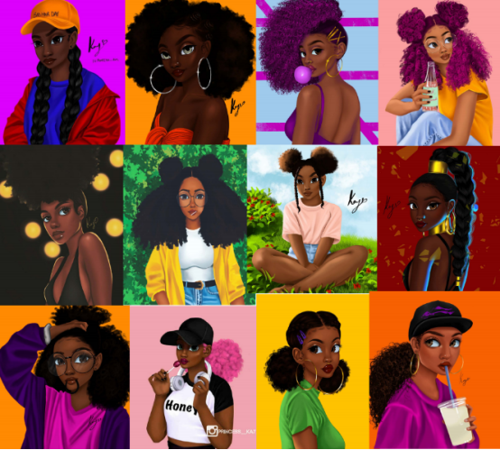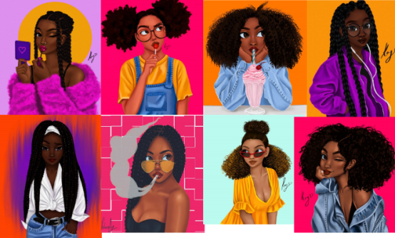 原告PRINCESS KARIBO是尼日利亚插画家,为突出各种背景下的黑人女性形象,创作了一系列极具特色的插画作品。