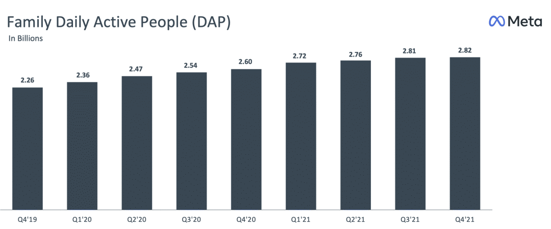 这包括 Facebook,随着越来越多的人发现滚动浏览 Facebook、Instagram、WhatsApp 和 Messenger 的价值,这个数字按季度增加。