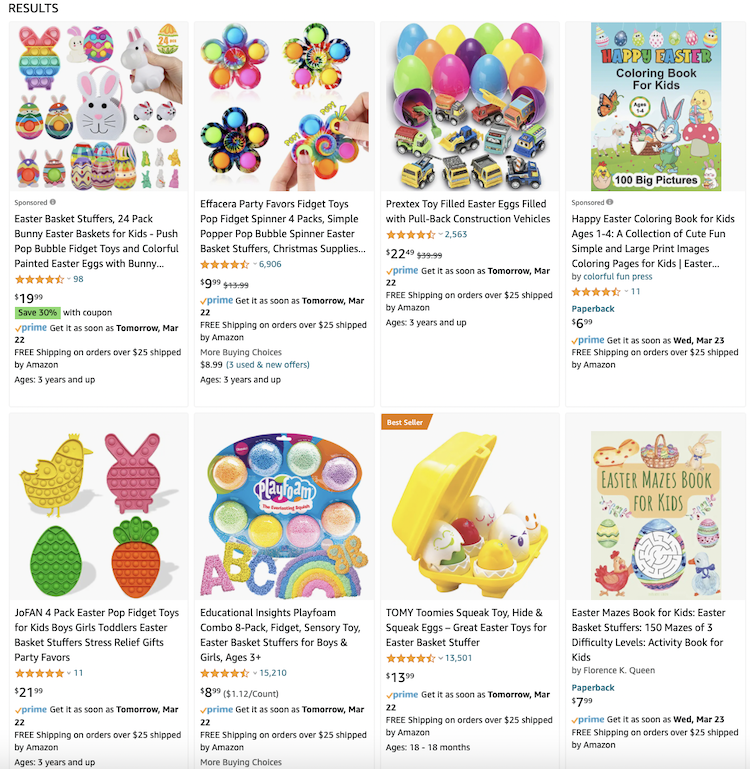 看看你本地的杂货店,你可能会发现各种各样可以在亚马逊上转售的产品:比如节日糖果、可填充的塑料复活节蛋、主题篮子、毛绒动物、收藏玩具等等。