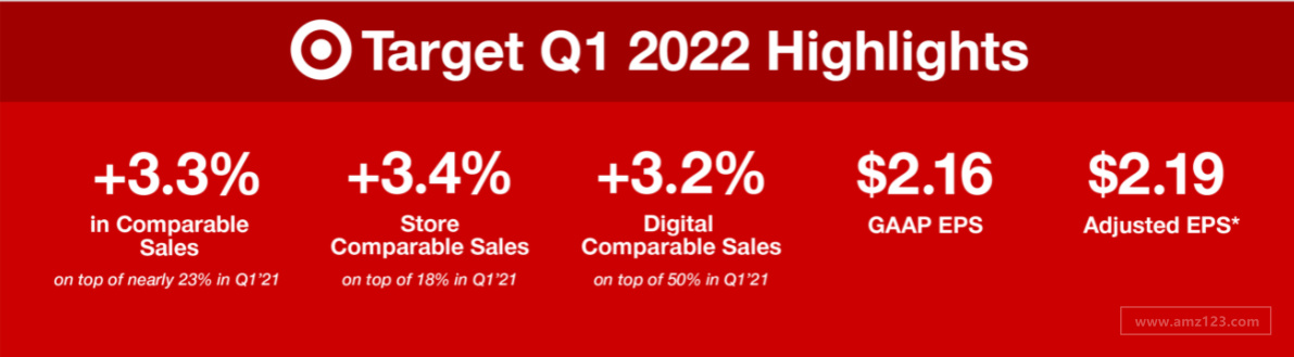 AMZ123获悉,5月18日Target发布截至4月30日的2022Q1季度利润远低华尔街预期,财报公布后Target股价大跌近25%,跌至52周低点。创1987年黑色星期一股市崩盘以来的最大单日跌幅,并下调了其利润预期。