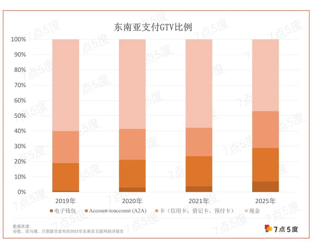 但近年来,东南亚用户对现金的依赖有下降趋势。据2021年东南亚互联网经济报告预计,东南亚现金占支付GTV的比例从2019年的60%降低到2025年的47%。