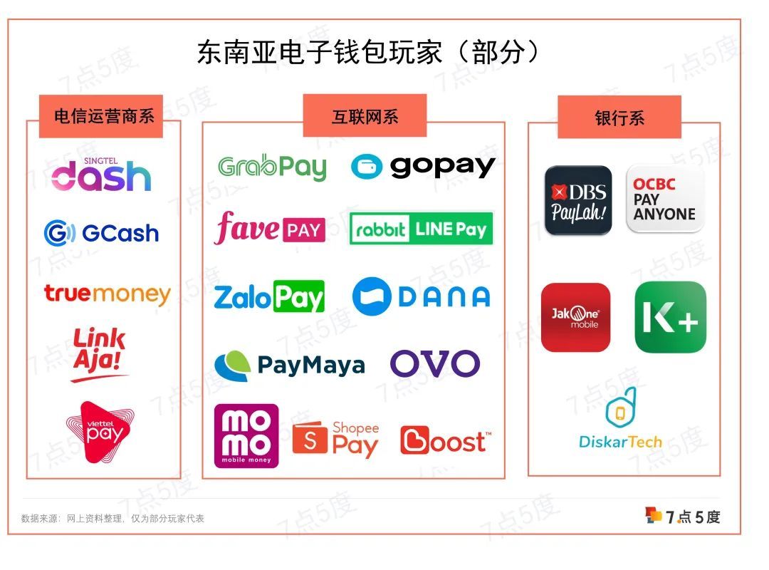 从更宽泛的角度来看,世界上有两种不同类型的移动钱包。一种是基于卡片的移动钱包,如Apple Pay和Google Pay,在发达市场更受欢迎。另一个是充值式移动钱包,如中国的支付宝和Grab的 GrabPay,在信用卡使用率较低的新兴市场很受欢迎。由于东南亚市场的分散性,电子钱包玩家也遍地开花。每个国家都有多个电子钱包代表玩家,既有银行机构旗下的移动钱包,也有非银行机构推出的移动钱包。从更细分的角度来看,东南亚电子钱包又可以大致划分为三类:电信运营商系、互联网公司系、银行系等。
