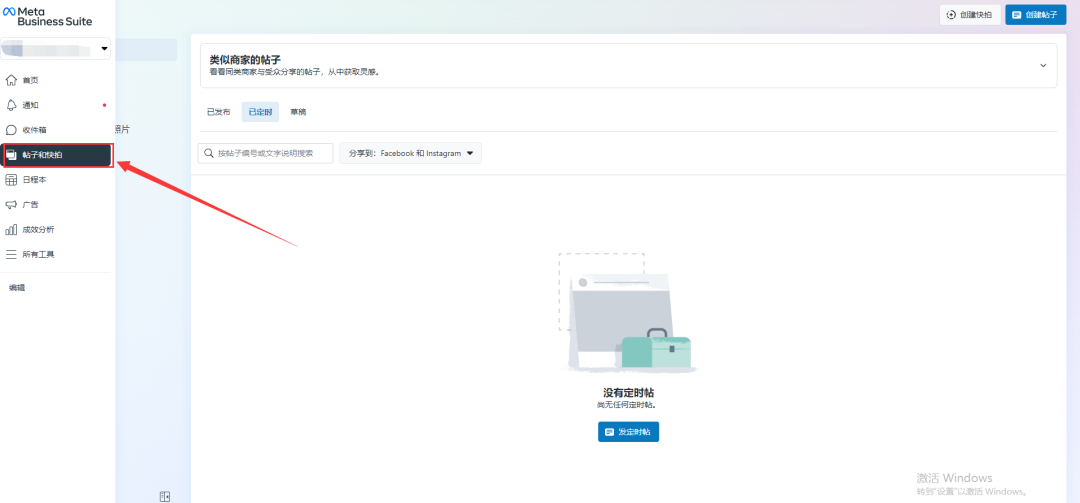 1. 以下步骤仅适用于通过桌面版 Meta Business Suite 重设帖子和快拍的发布时间。