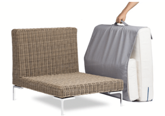 轻巧便捷的Outershell设计,则解决了单品重,难收纳的问题。不用的时候直接将沙发垫子打包提进室内。