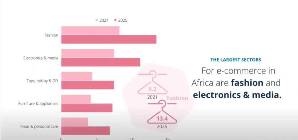 非洲电商最热门的产品类别是 3C 数码、时尚、美容产品和杂货,酒店和航班的预订服务等互联网服务也越来越受欢迎。