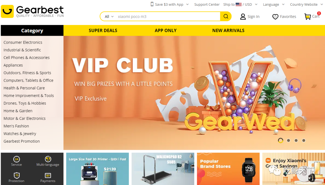 Gearbest——深圳环球易购旗下自营综合性跨境电商平台,2014 年创立,曾连续 3 年荣登"BrandZ™中国出海品牌50强"。专注于电子产、小型器械和时尚男装的网络购物平台。