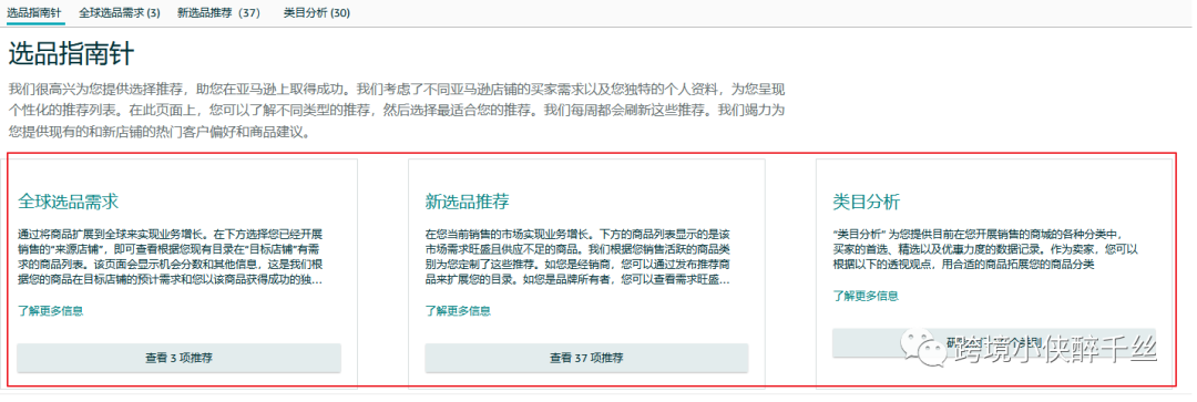 总共分三大模块-全球选品需求、新选品推荐、类目分析