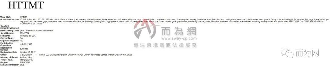 原告品牌:HTTMT