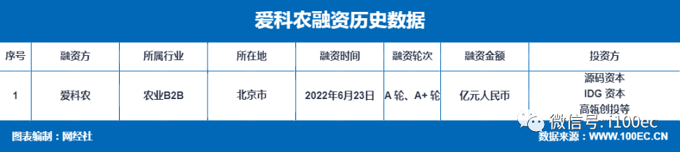 导读:6月27日,农业产业数字化服务商"爱科农"近日宣布同步完成 A 轮、A+ 轮两轮亿元融资。A 轮由源码资本领投,A+ 轮由IDG资本和高瓴创投联合领投,线性资本、食芯资本两轮均参与跟投。