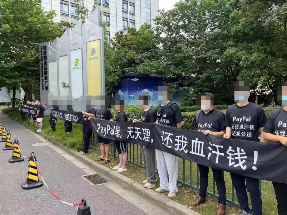 近日,据多方爆料,数十名卖家聚集在上海陆家嘴金融服务广场,前往PayPal中国总部维权,这些卖家手拿黑底白字横幅控诉PayPal趁疫打劫,要求偿还血汗钱!