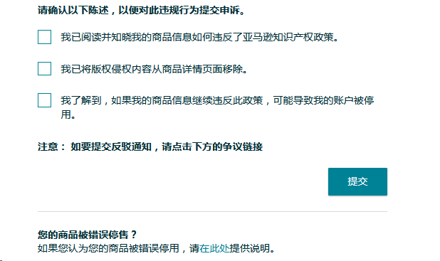 一般被投诉版权侵权后,亚马逊都会提供两种处理方法:承认侵权or提交DMCA。
