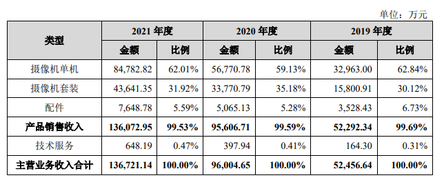 睿联非常专注,专门做摄像机,产品销售收入占了99.53%,达13.6亿元。SKU不多,以摄像机单机为主要产品,光这类产品卖了近170万件(169.45万),创收约8.47亿元。