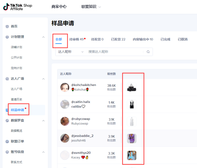 其次就是最难的,分析索要样品的达人数据来决定是否寄送样品。为什么说是最难的,因为好多低粉达人也能给带出货。