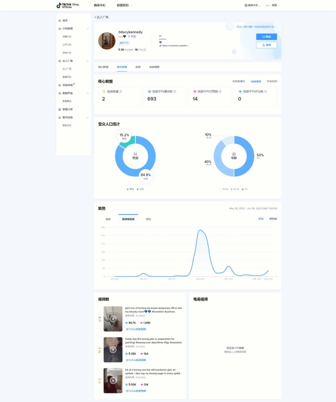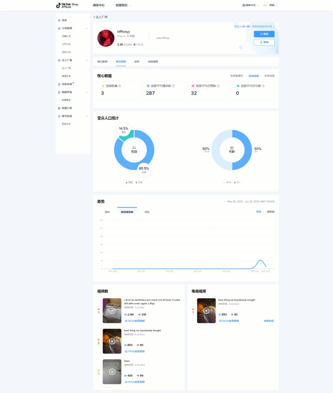 2.对于技术小白来说很友好,不用去操心tiktok app(但是后期如果要挑选优质达人还是需要tiktok app)