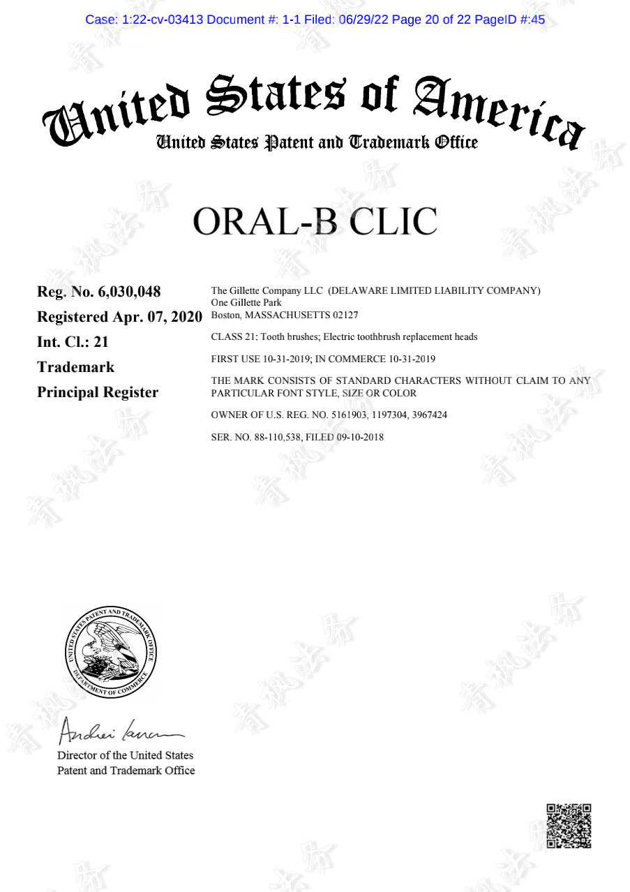 而本次诉讼,引证的主要是吉列旗下的其中一个品牌Oral-B商标,Oral-B是美国的口腔卫生产品品牌,包括牙膏、牙刷、电动牙刷和漱口水。