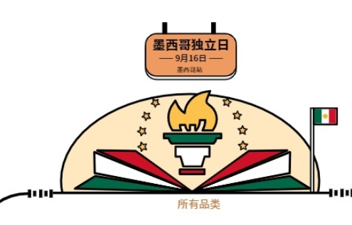—9月16日 墨西哥独立日:全品类期间墨西哥国旗、口哨、喇叭、油彩、彩带、气球等派对用品销量增多。