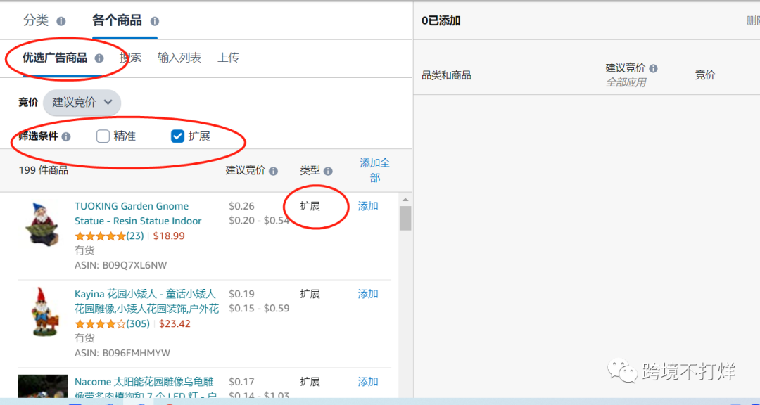 亚马逊卖家后台—广告活动管理—商品推广—手动投放—商品投放—各个商品—优选广告—筛选条件(精准/扩展)