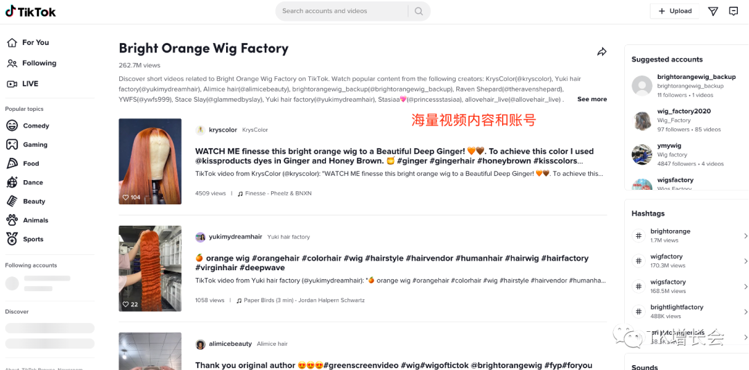 用户点击后,直接进入到TikTok的标签页里,可以看到海量的相关视频,标签曝光量已经超过2亿6千2百万。
