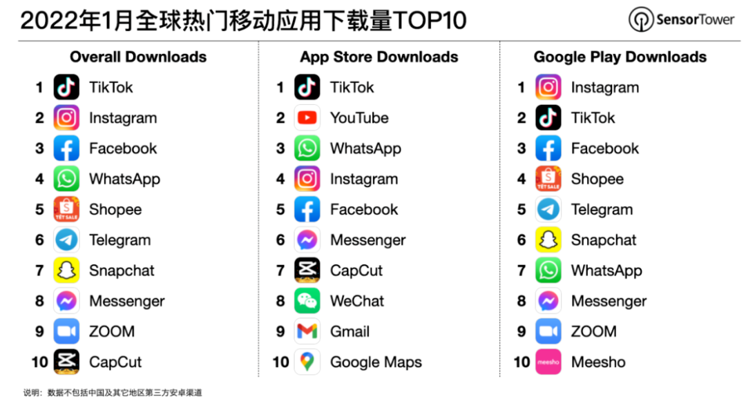 2022年第一季度,TikTok全球月活跃用户接近16亿,成为全球用户活跃度最高的应用之一。