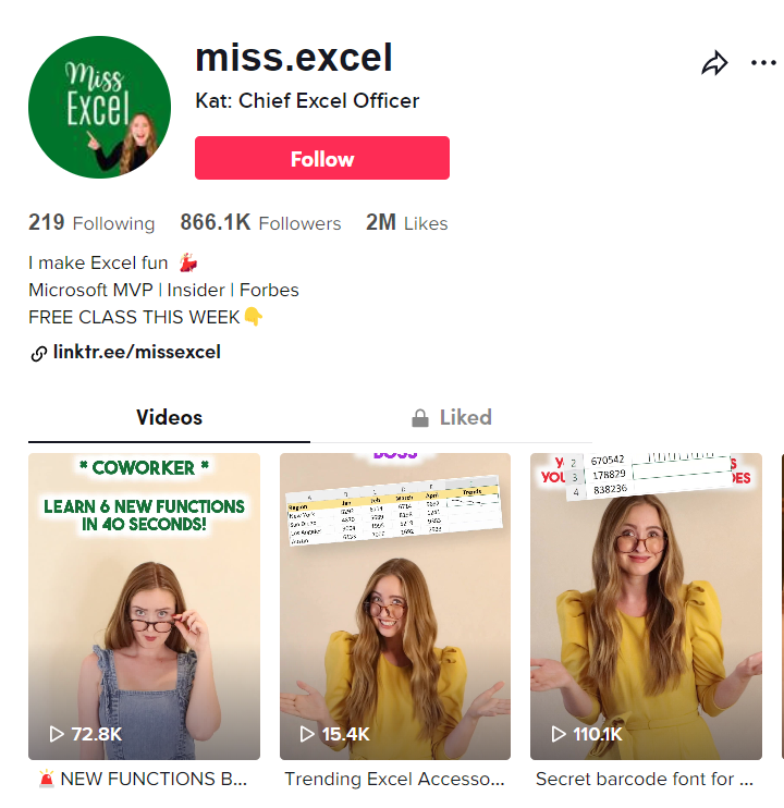 在疫情期间,当朋友建议凯特试着拍摄 Excel 教程放在 TikTok 上,闲着无事的她决定试试。